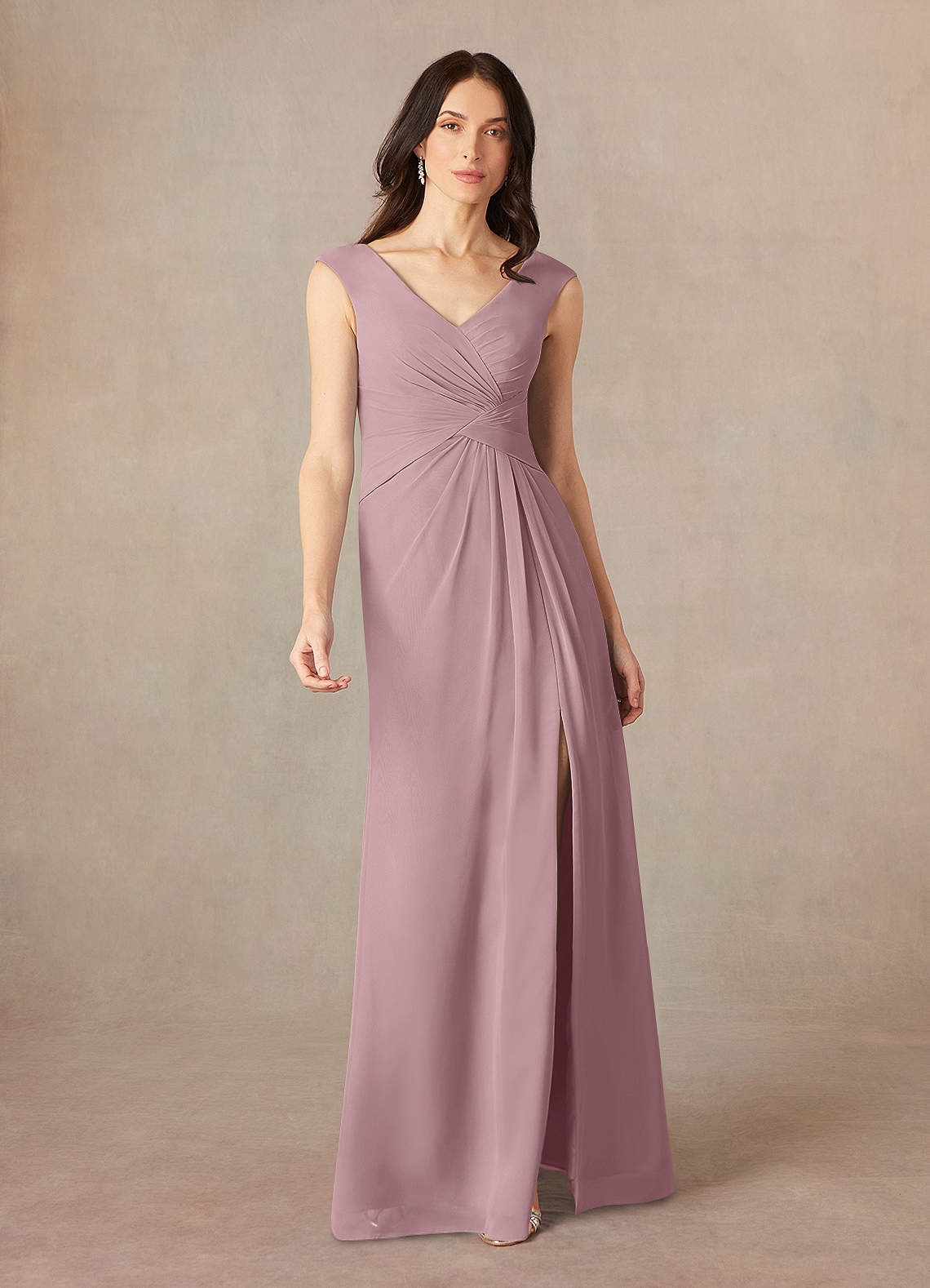 Dusty Rose A-Line V-Neck Pleated Chiffon Dress