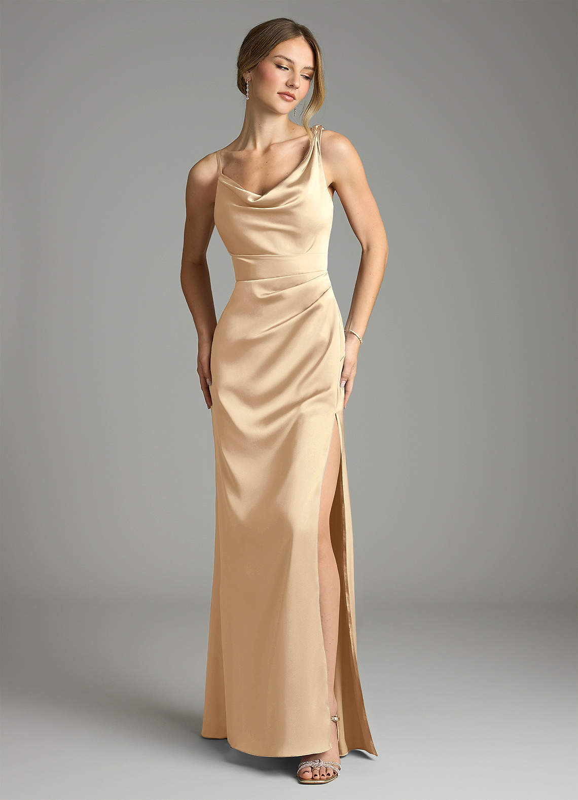 Champagne Mermaid Pleated Stretch Satin Dress