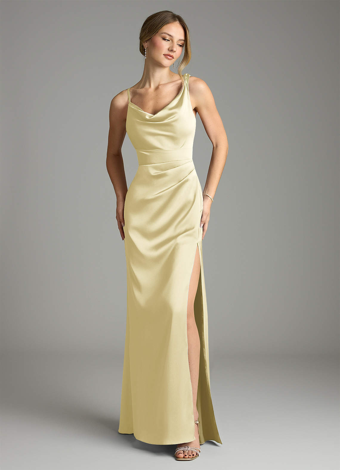 Lemon Sorbet Mermaid Pleated Stretch Satin Dress