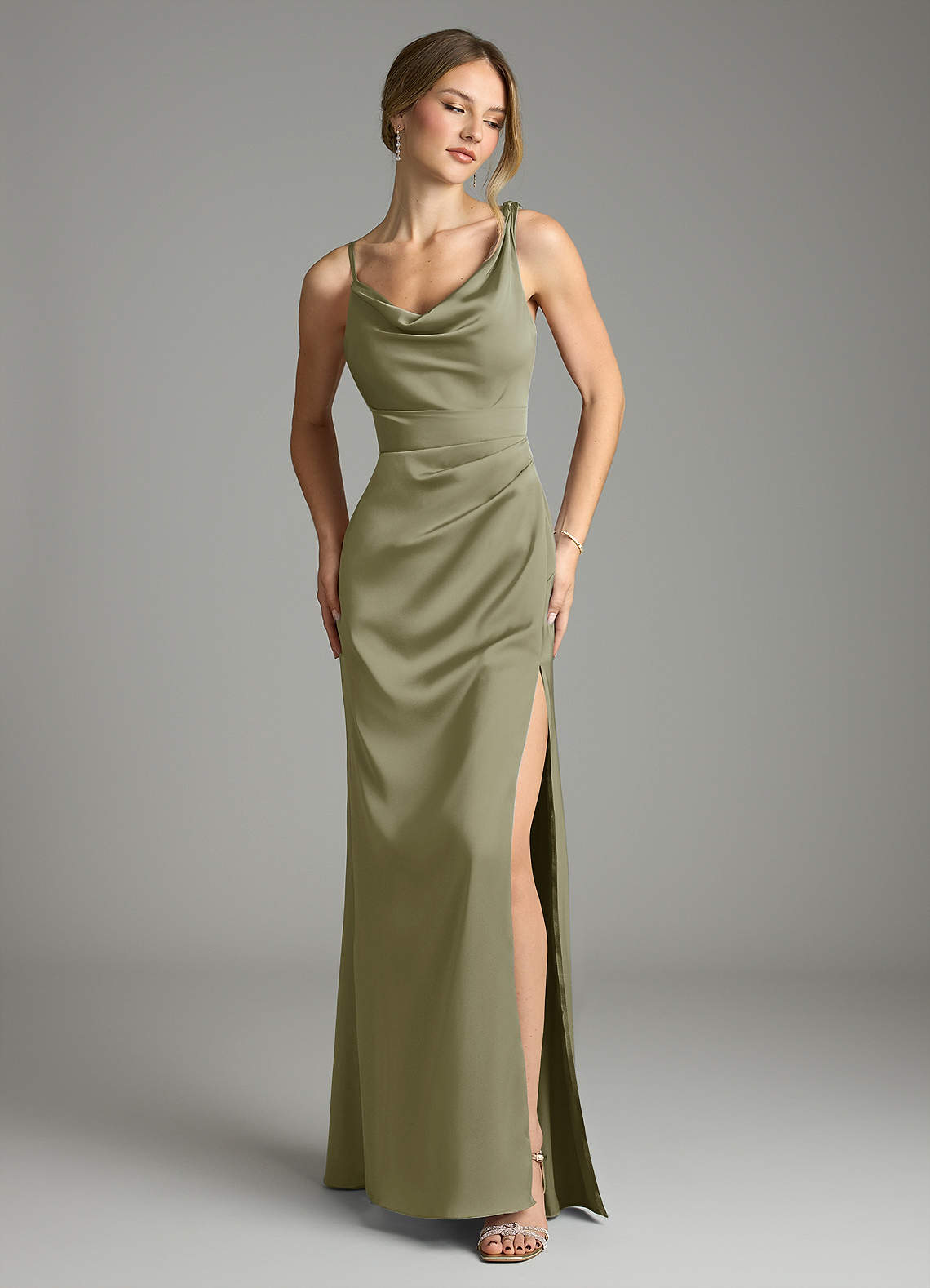Pistachio Mermaid Pleated Stretch Satin Dress