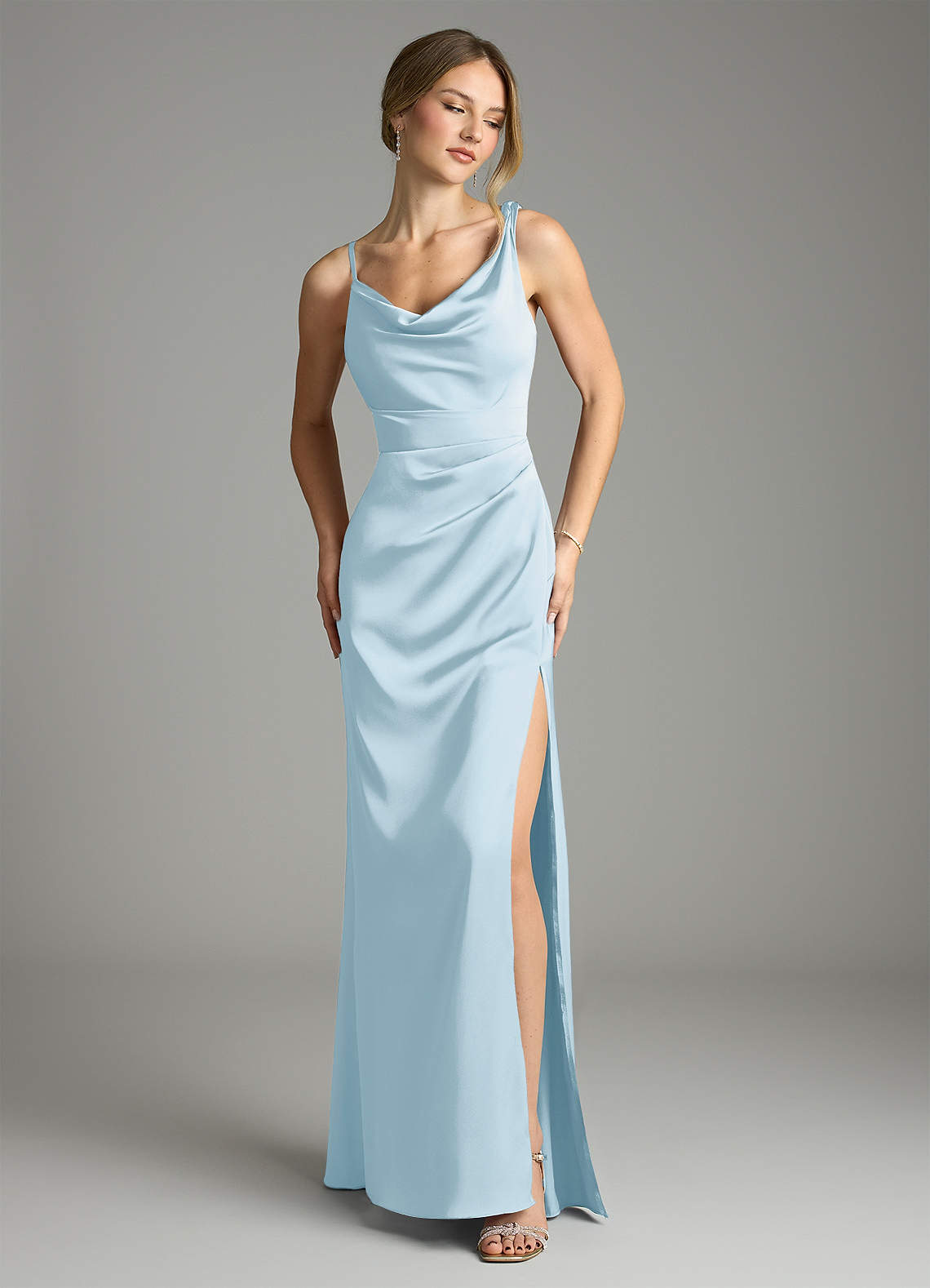 Sky Blue Mermaid Pleated Stretch Satin Dress