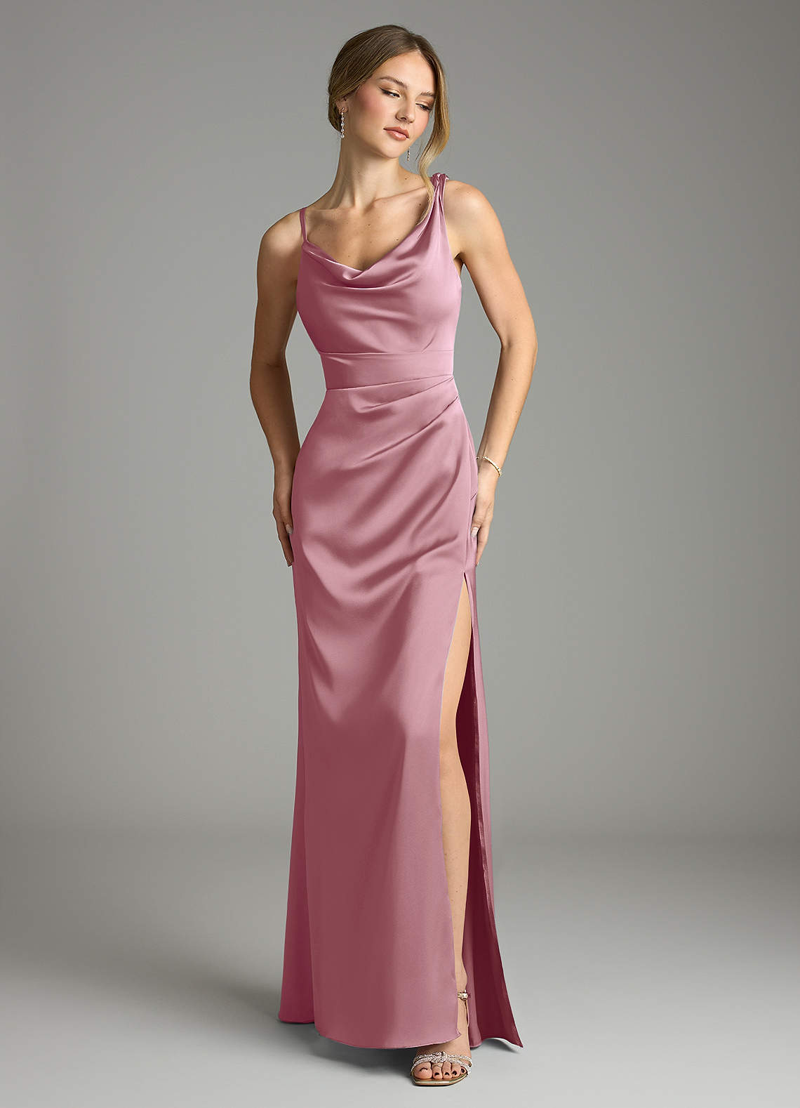 Vintage Mauve Mermaid Pleated Stretch Satin Dress