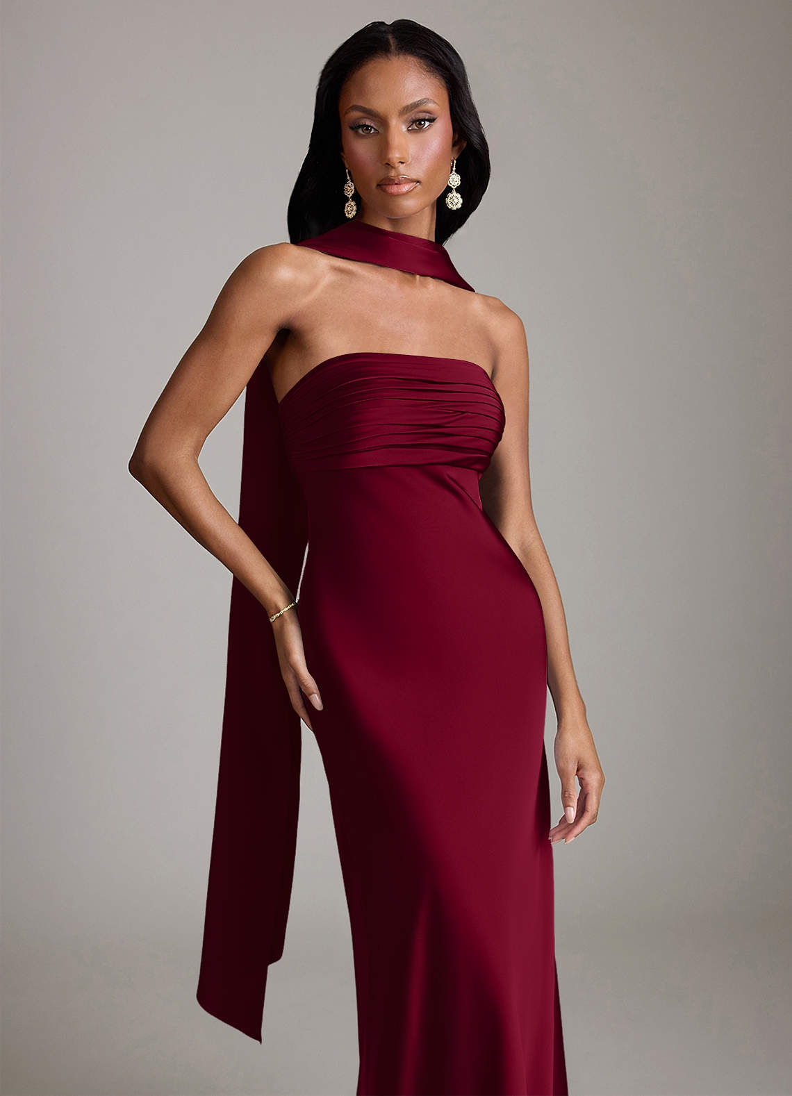 Burgundy Mermaid Strapless Stretch Satin Dress