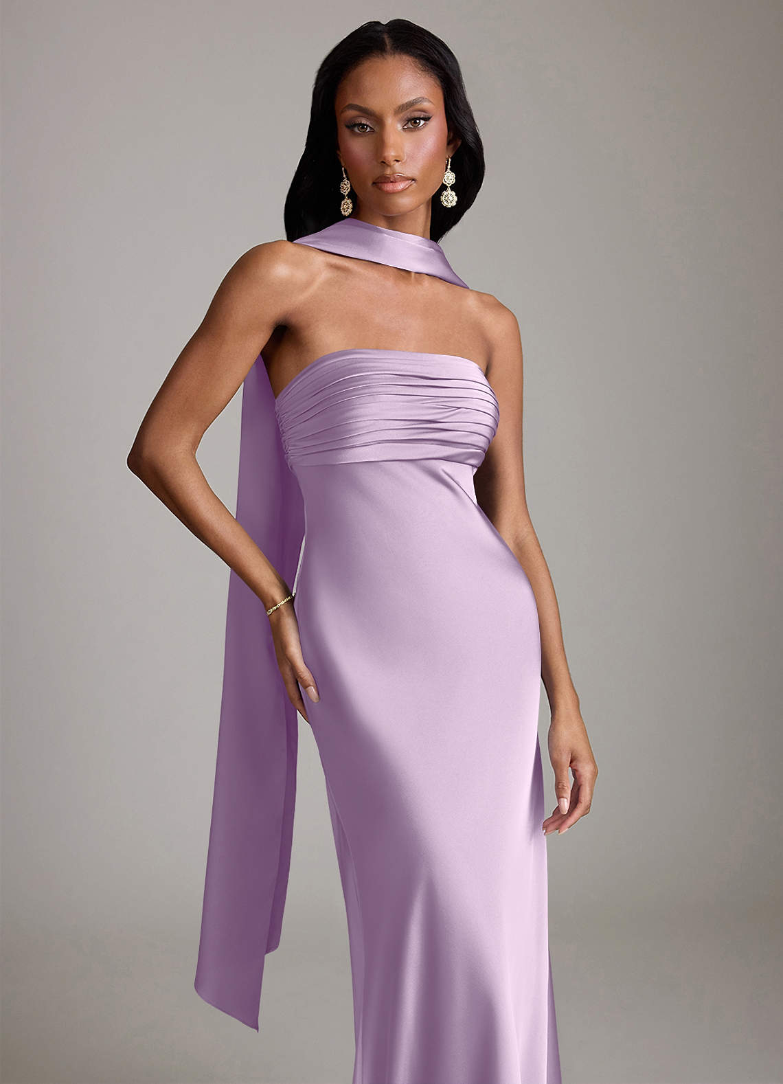 Frosted Lilac Mermaid Strapless Stretch Satin Dress