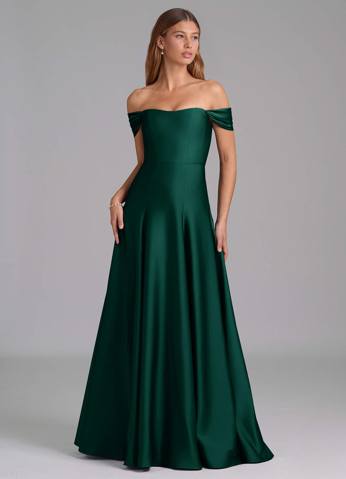 Emerald A-Line Off the Shoulder Stretch Satin Convertible Dress