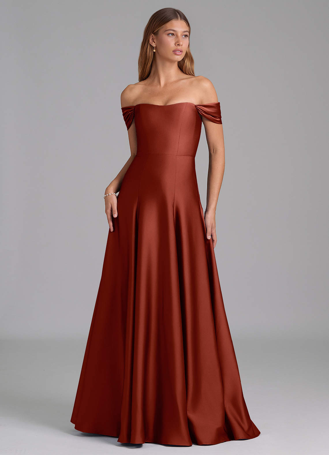 Terracotta A-Line Off the Shoulder Stretch Satin Convertible Dress