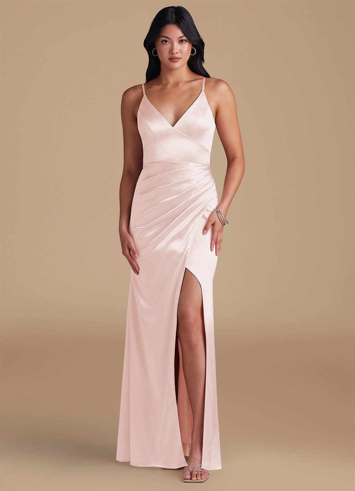Rose Gold Sheath Pleated Metallic Satin Dress