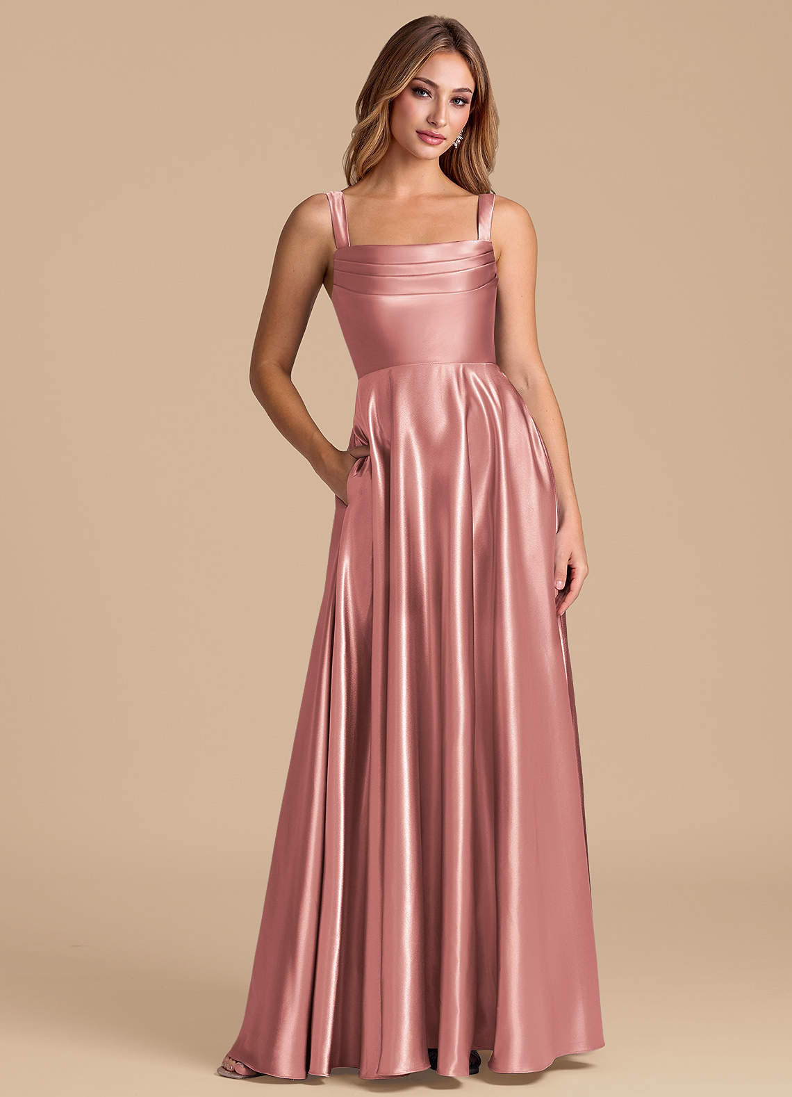 Dusty Rose A-Line Pleated Metallic Satin Dress