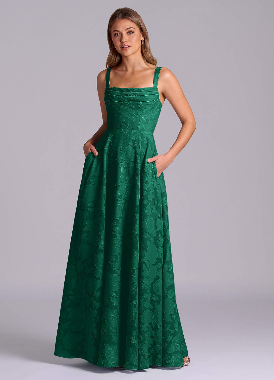 Emerald A-Line Pleated Floral Burnout Dress