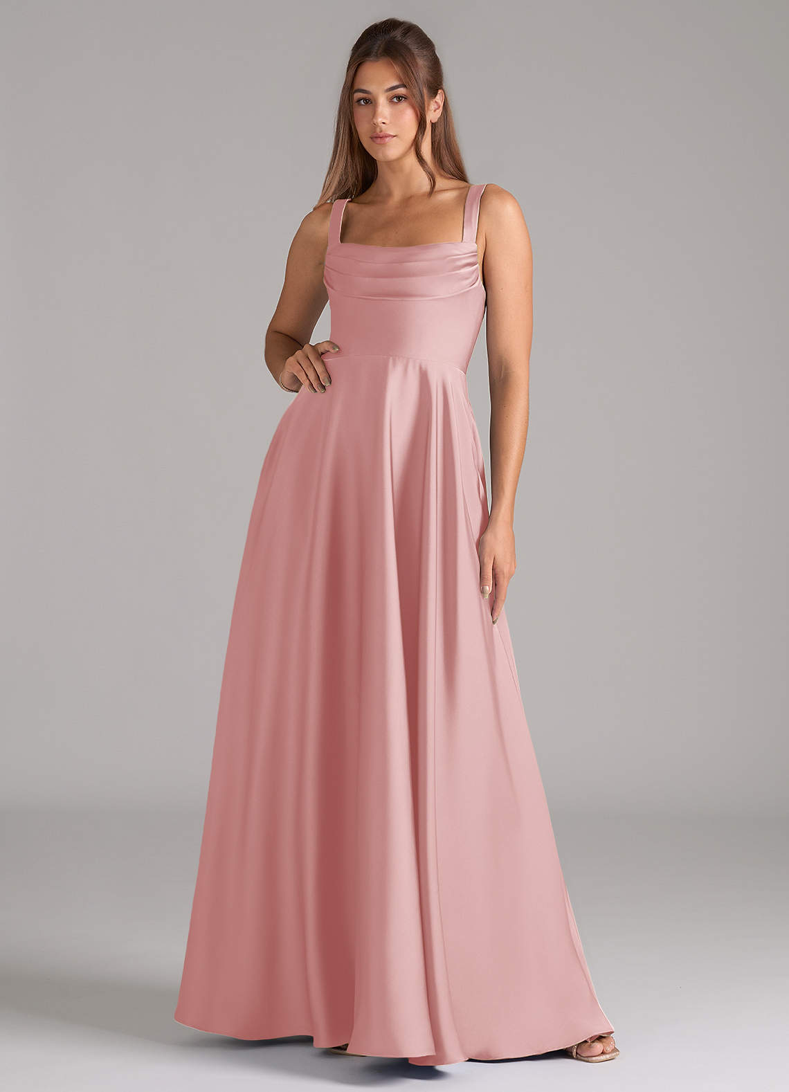 Powder Pink A-Line Pleated Stretch Satin Dress