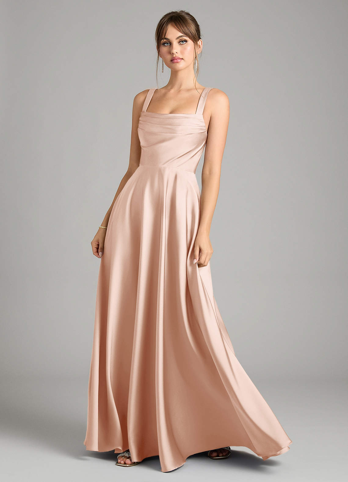Rose Gold A-Line Pleated Stretch Satin Dress