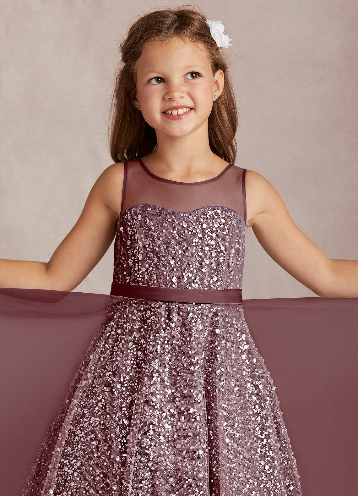 Sangria A-Line Beaded Tulle Dress