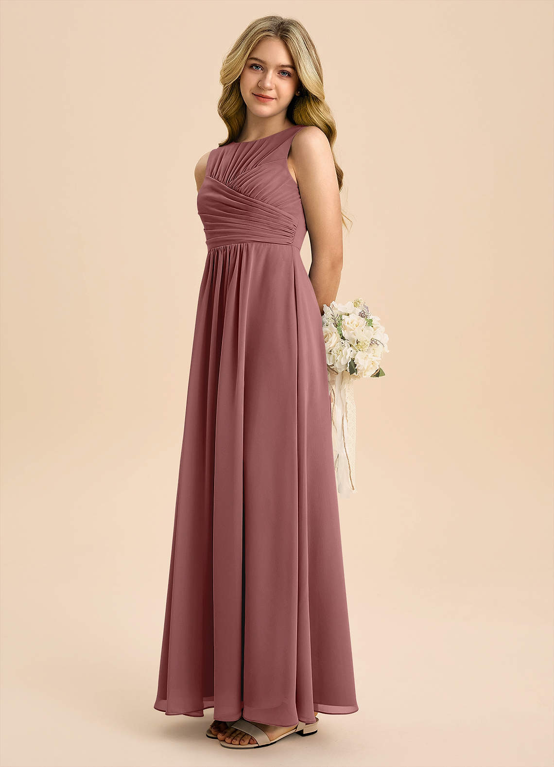 Desert Rose A-Line Pleated Chiffon Dress