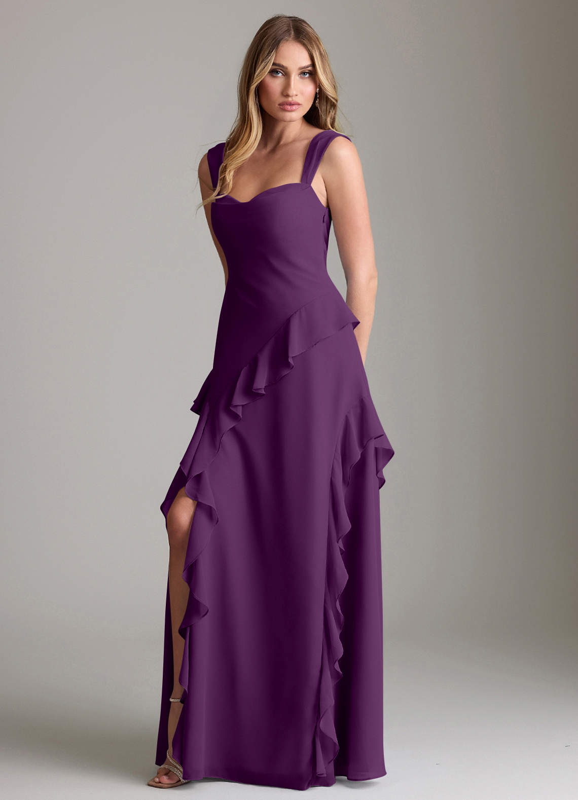 Grape A-Line Sweetheart Neckline Chiffon Dress