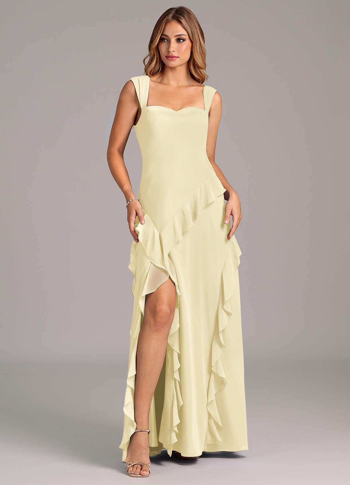 Azazie Sloane Bridesmaid Dresses Lemon Sorbet A-Line Sweetheart Neckline Chiffon Dress image1