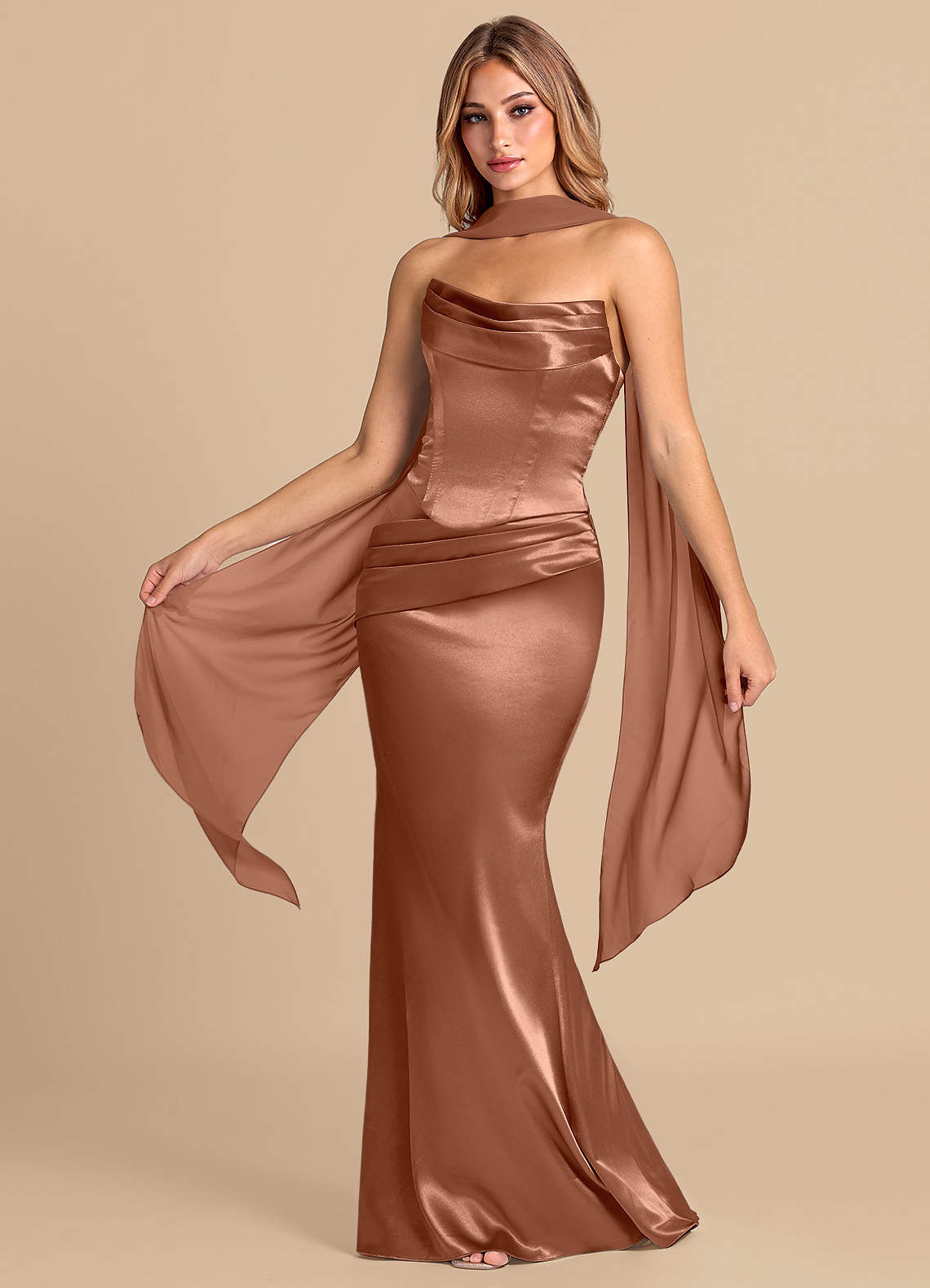 Bronzer Mermaid Corset Metallic Satin Convertible Dress