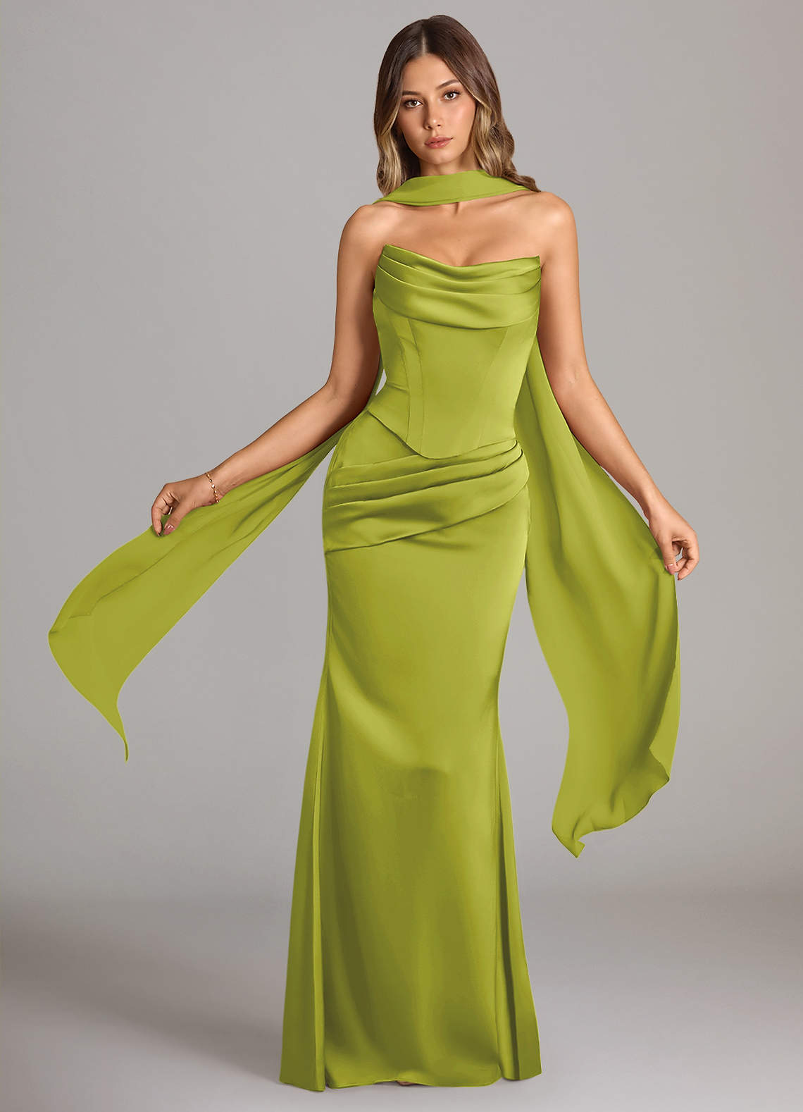 Lemongrass Mermaid Strapless Stretch Satin Convertible Dress