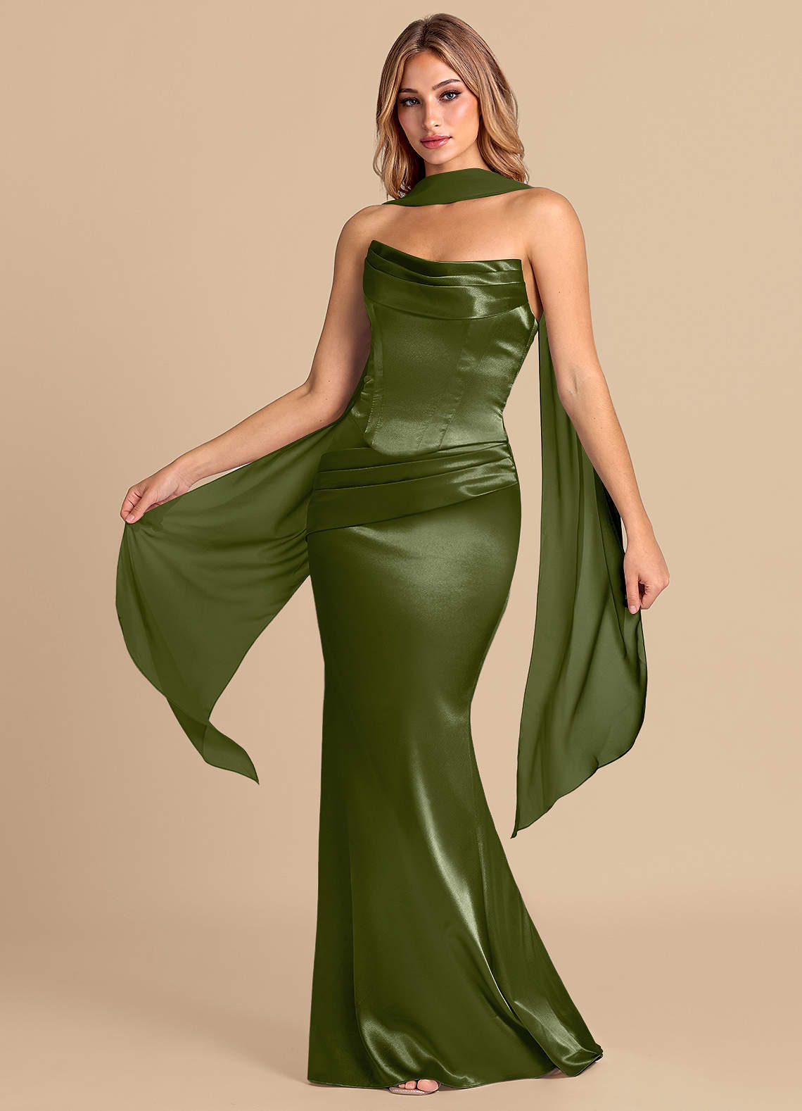 Olive Mermaid Corset Metallic Satin Convertible Dress
