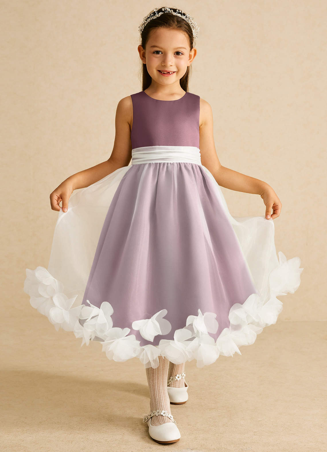 Vintage Mauve A-Line Sleeveless Organza Dress
