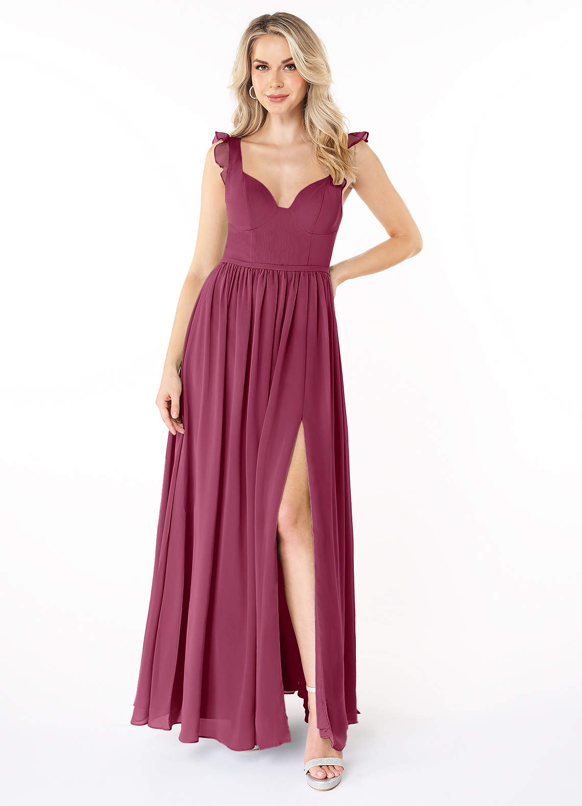 Mulberry A-Line Sweetheart Ruched Chiffon Dress