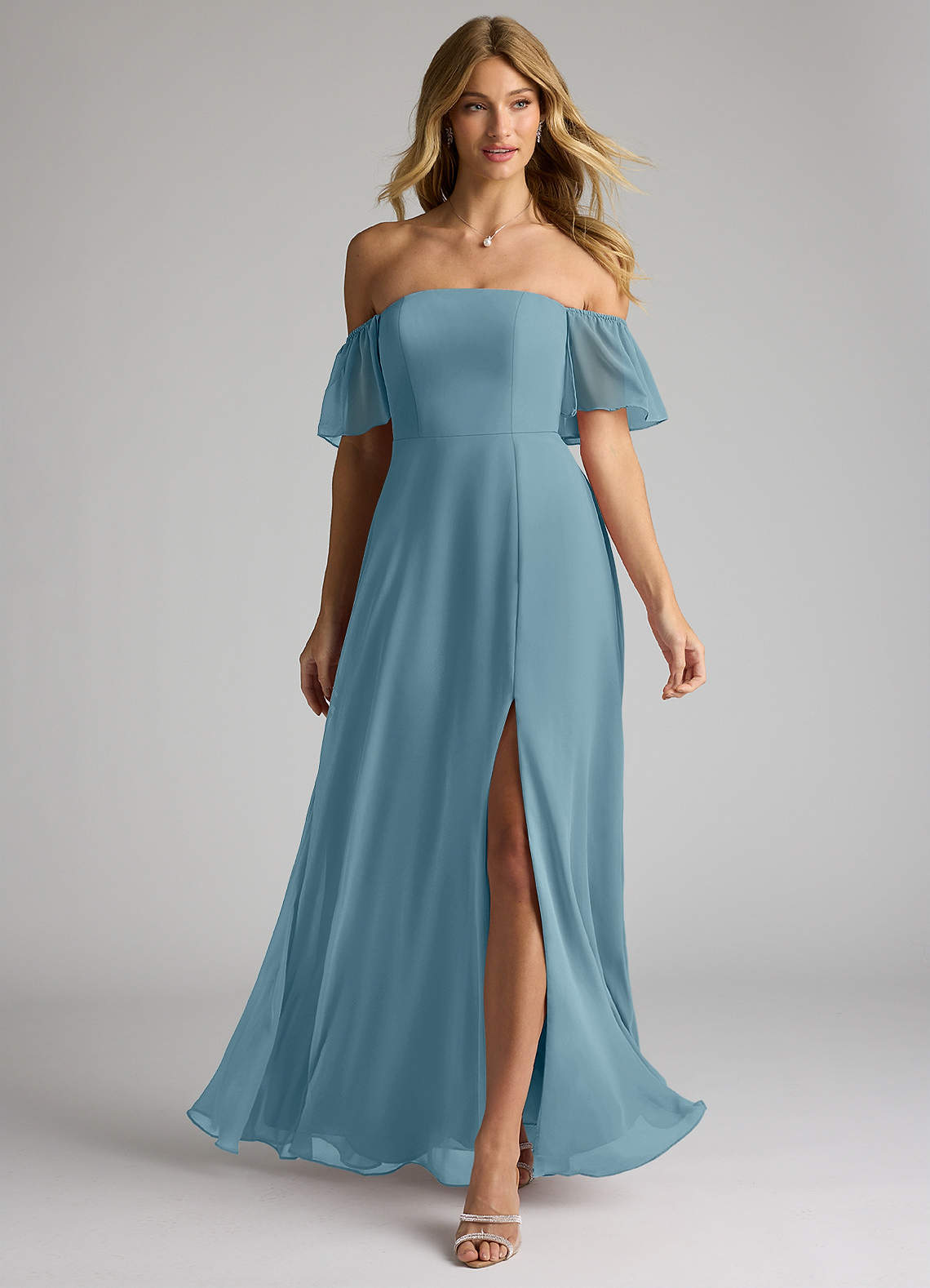 Moody Blue A-Line Off the Shoulder Chiffon Convertible Dress