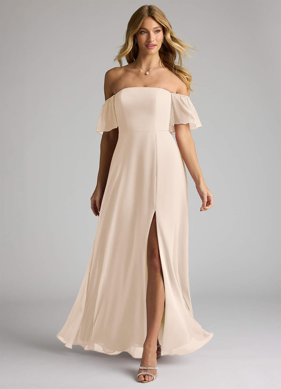 White Alabaster A-Line Off the Shoulder Chiffon Convertible Dress