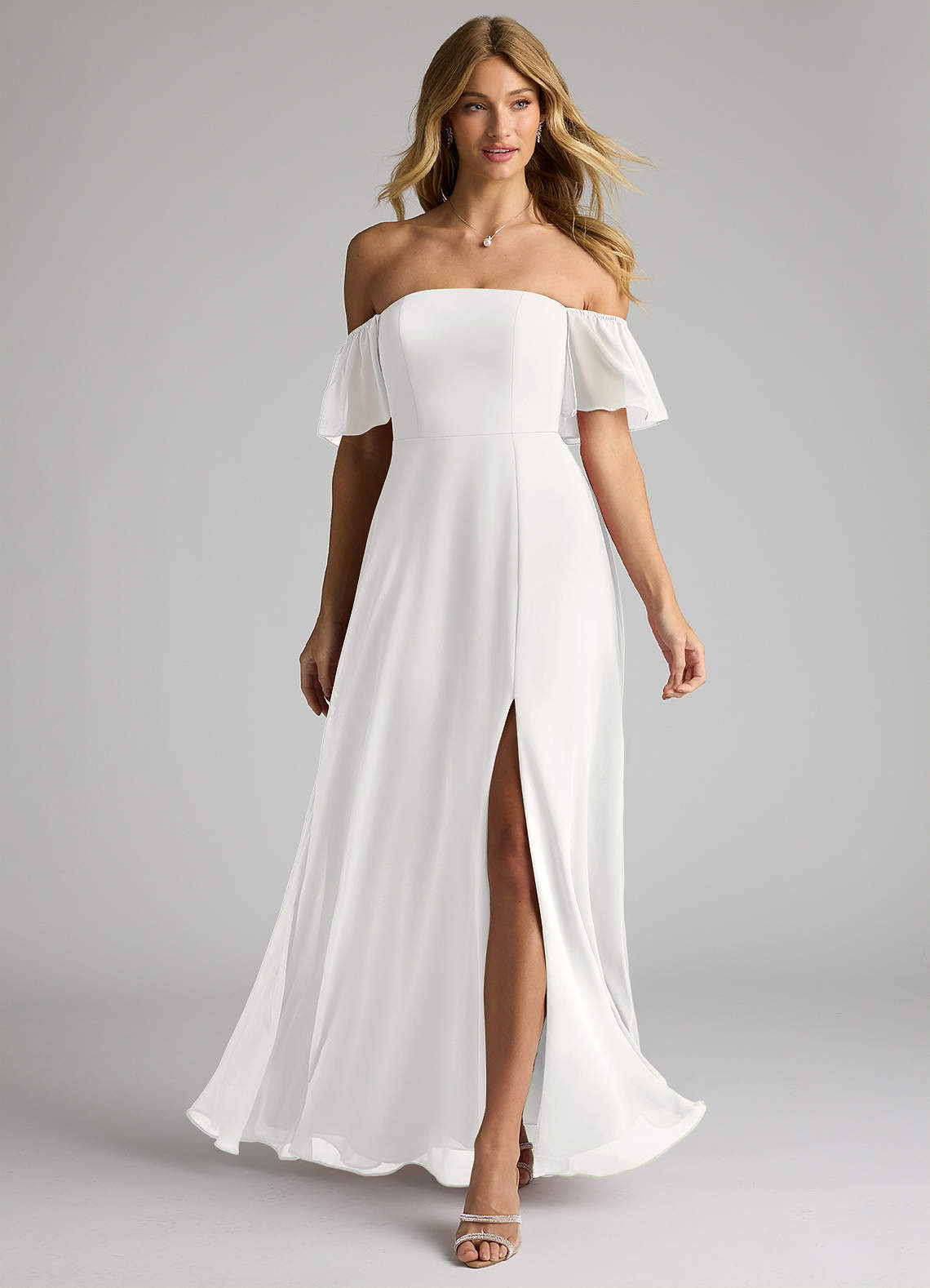 White A-Line Off the Shoulder Chiffon Convertible Dress