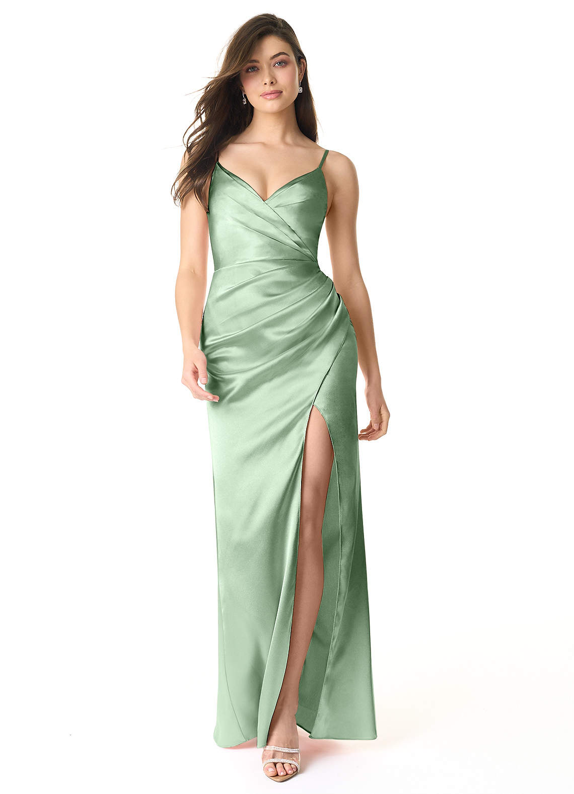 Matcha Mermaid Pleated Metallic Satin Dress