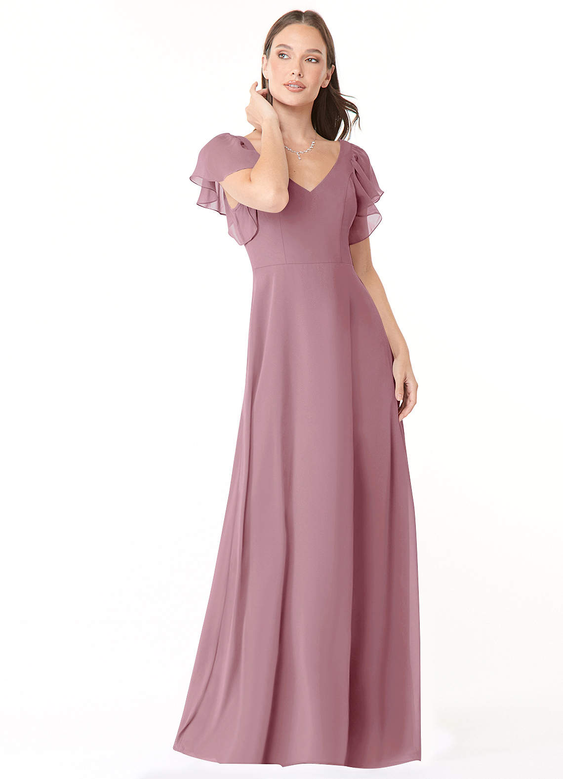 Vintage Mauve A-Line Ruched Chiffon Dress
