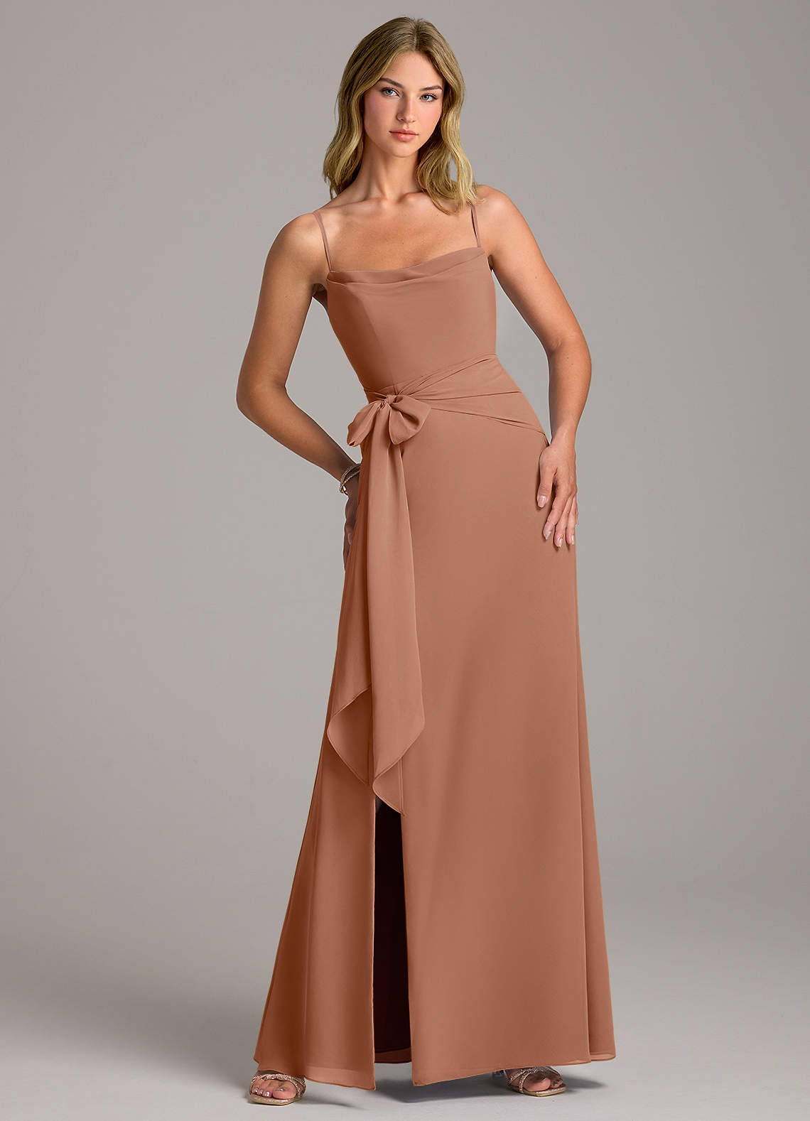 Bronzer A-Line with Belt Chiffon Dress