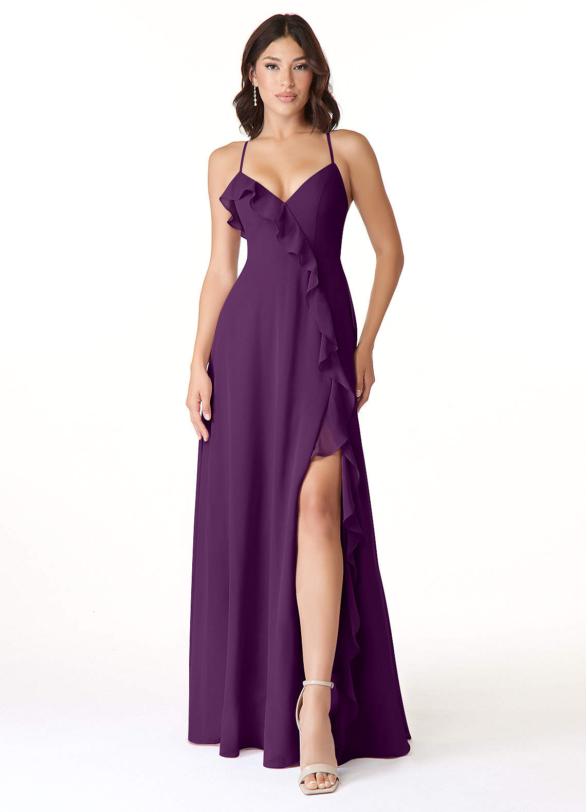 Azazie Tarni Bridesmaid Dresses Grape A-Line Chiffon Dress image1