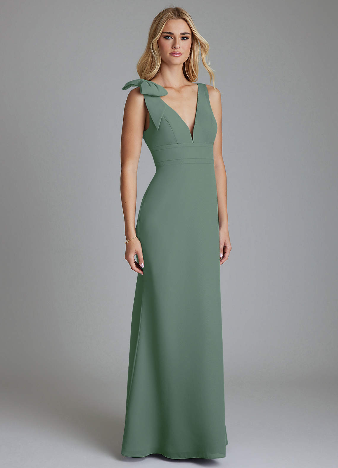 Eucalyptus Sheath Bow Chiffon Dress