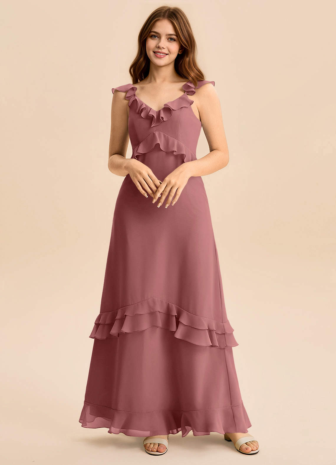 Amethyst A-Line Ruched Chiffon Dress