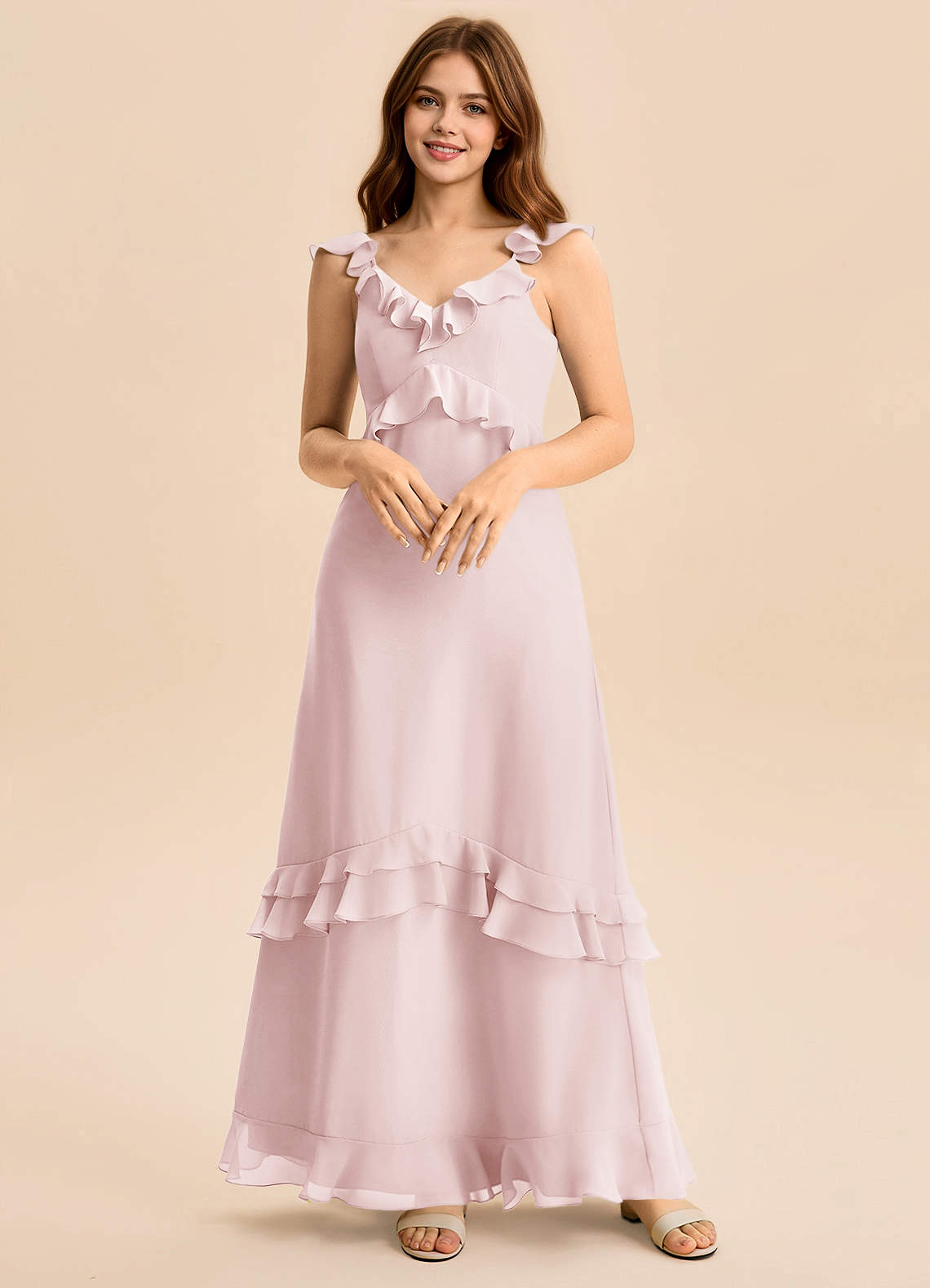 Blushing Pink A-Line Ruched Chiffon Dress