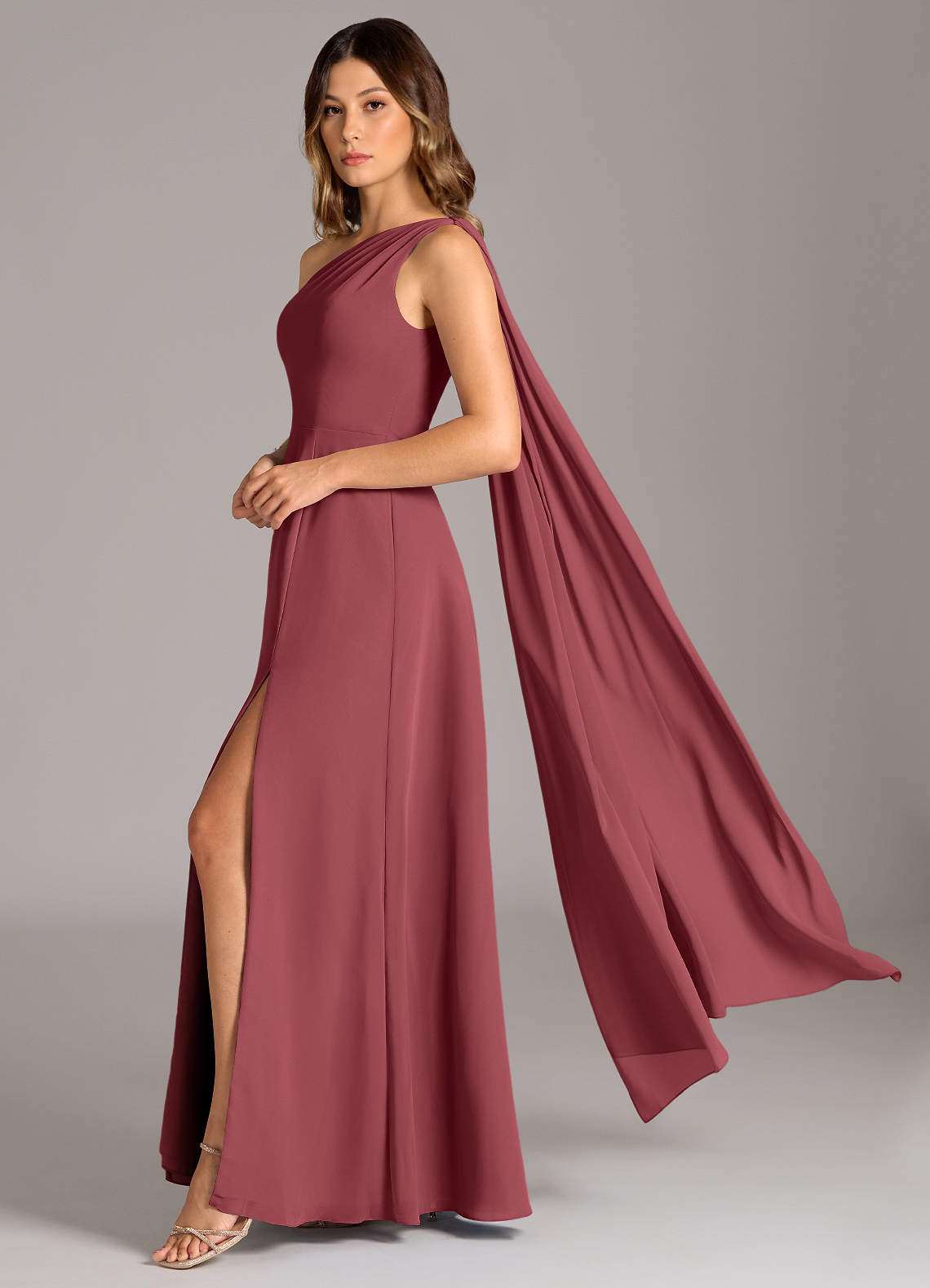 Merlot A-Line One Shoulder Chiffon Dress