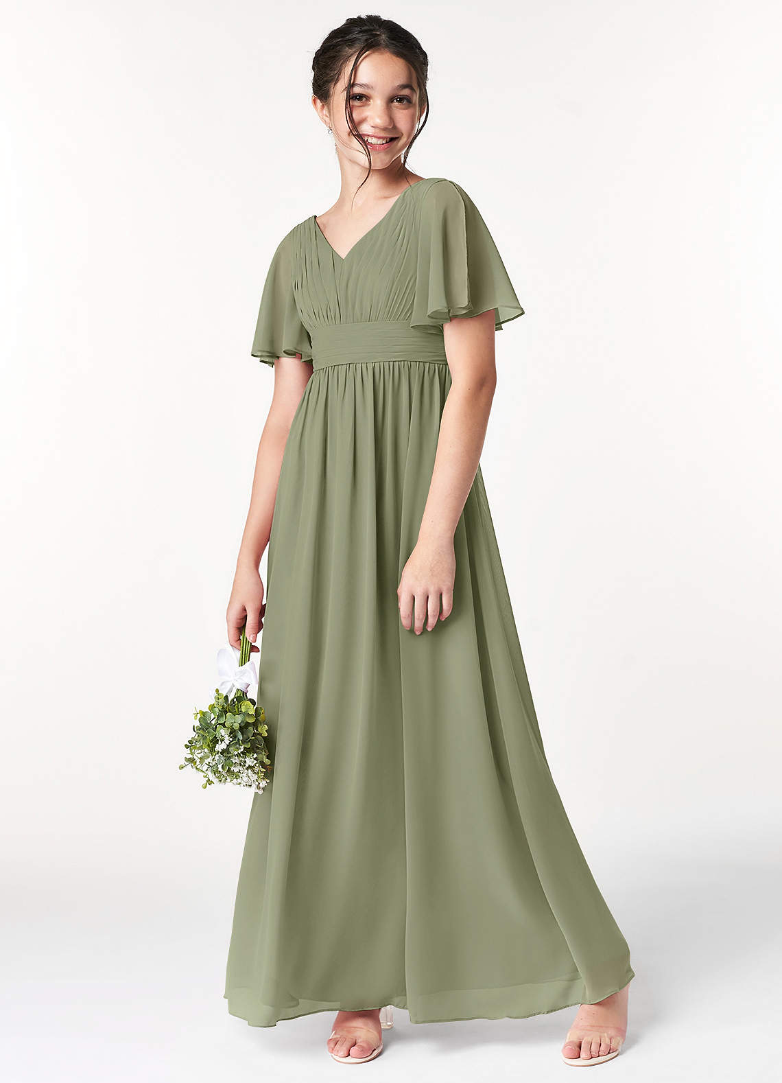 Pistachio A-Line Pleated Chiffon Dress