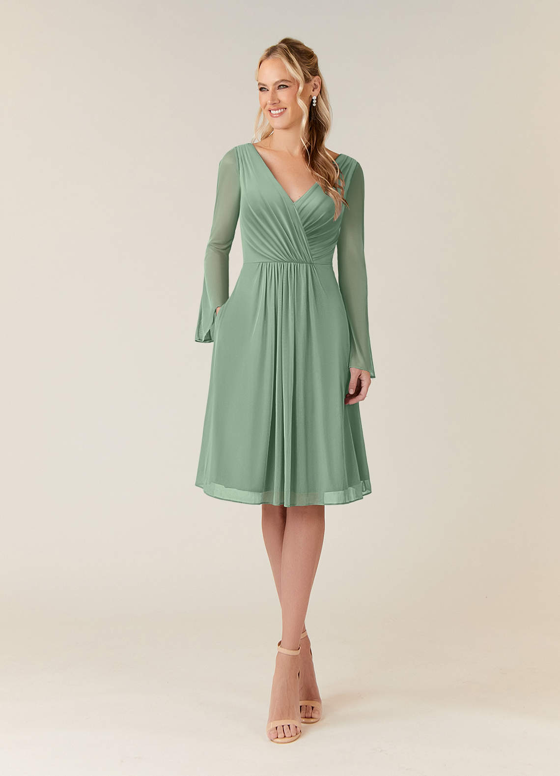 Dusty Blue A-Line Pleated Mesh Dress