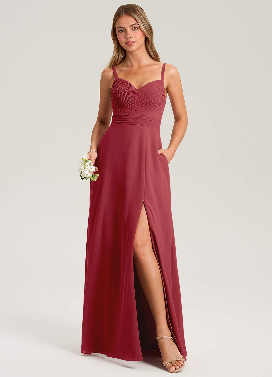 Pomegranate A-Line Pleated Chiffon Dress