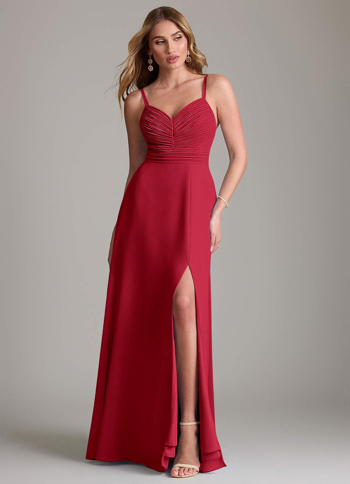 Scarlet A-Line Pleated Chiffon Dress