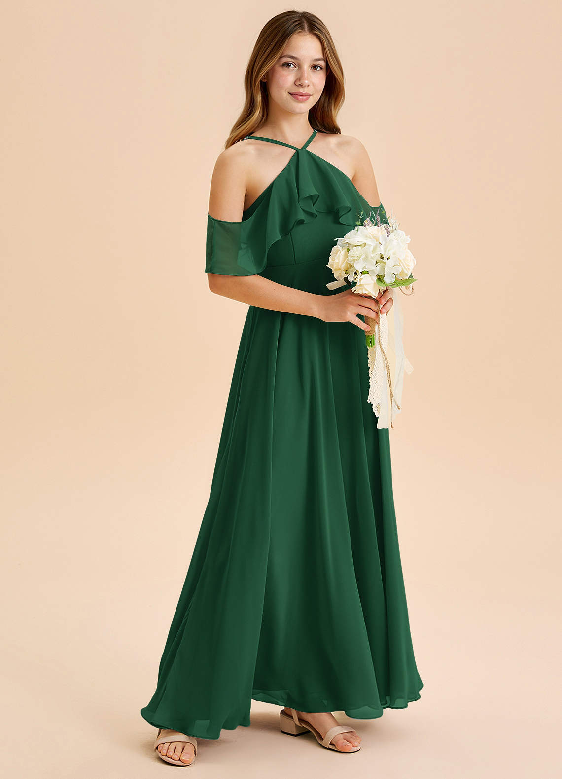 Dark Green A-Line Off the Shoulder Chiffon Dress