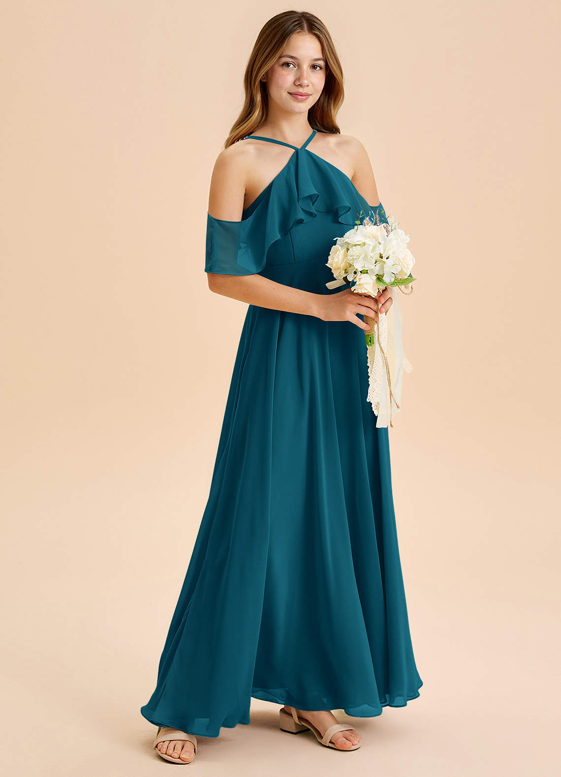 Ink Blue A-Line Off the Shoulder Chiffon Dress