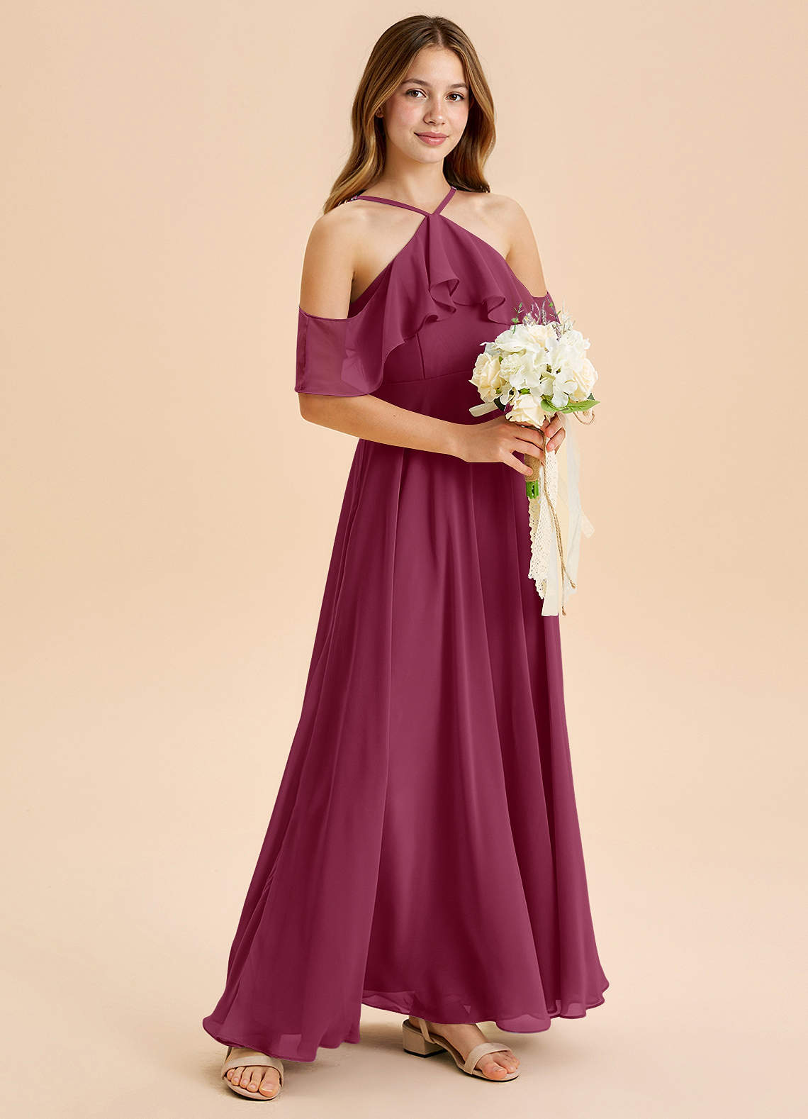 Mulberry A-Line Off the Shoulder Chiffon Dress