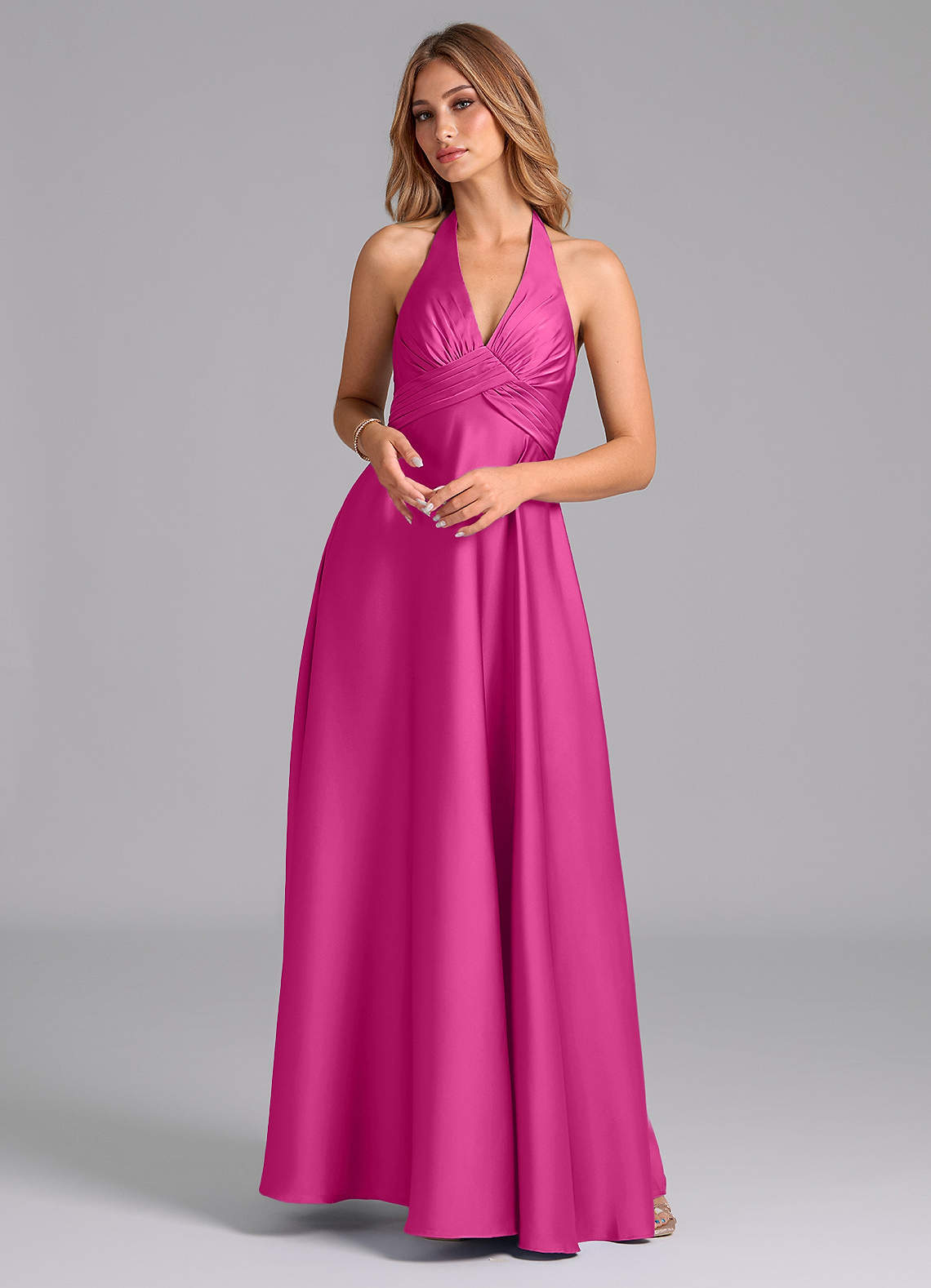 Fuchsia A-Line Pleated Stretch Satin Dress