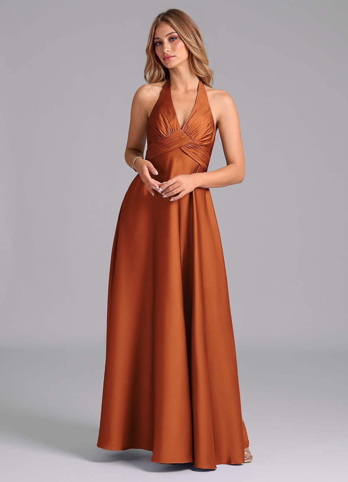 Cinnamon A-Line Pleated Stretch Satin Dress