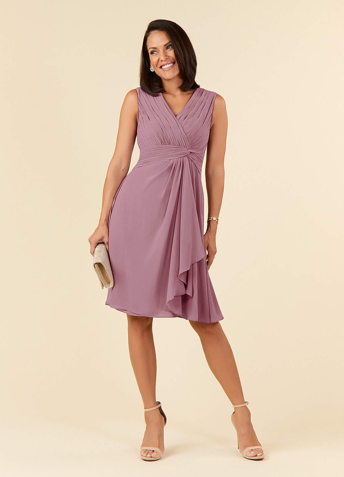 Vintage Mauve A-Line V-Neck Pleated Chiffon Dress