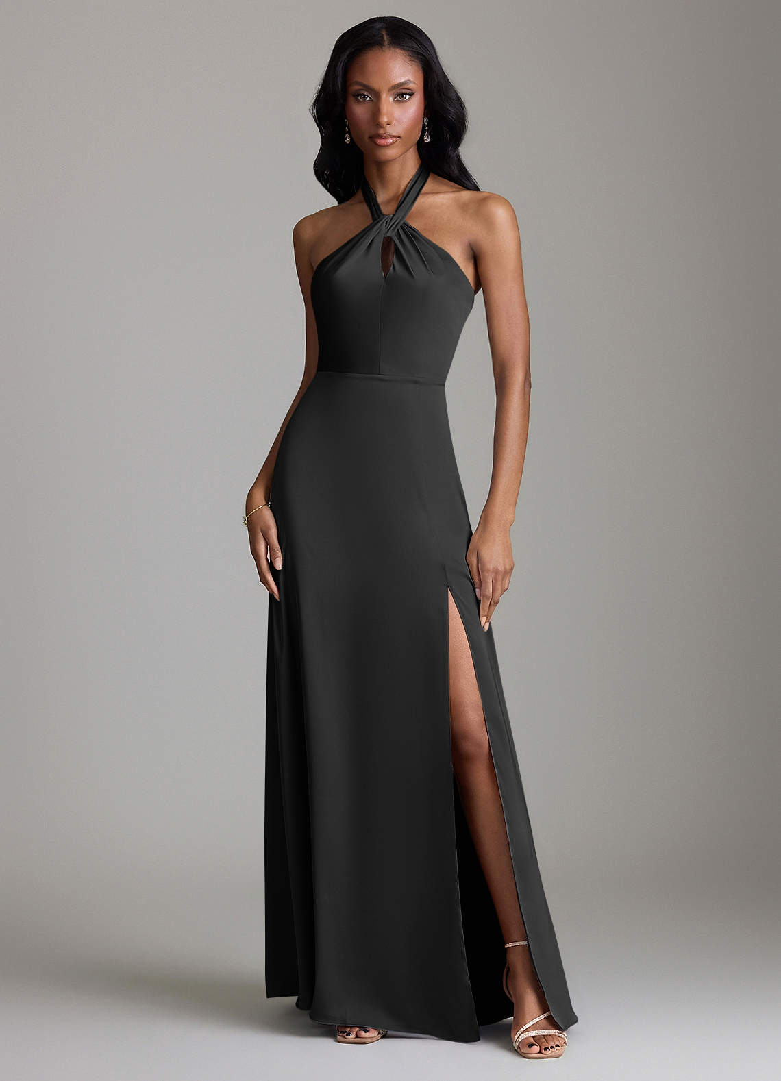Black A-Line Side Slit Stretch Satin Dress