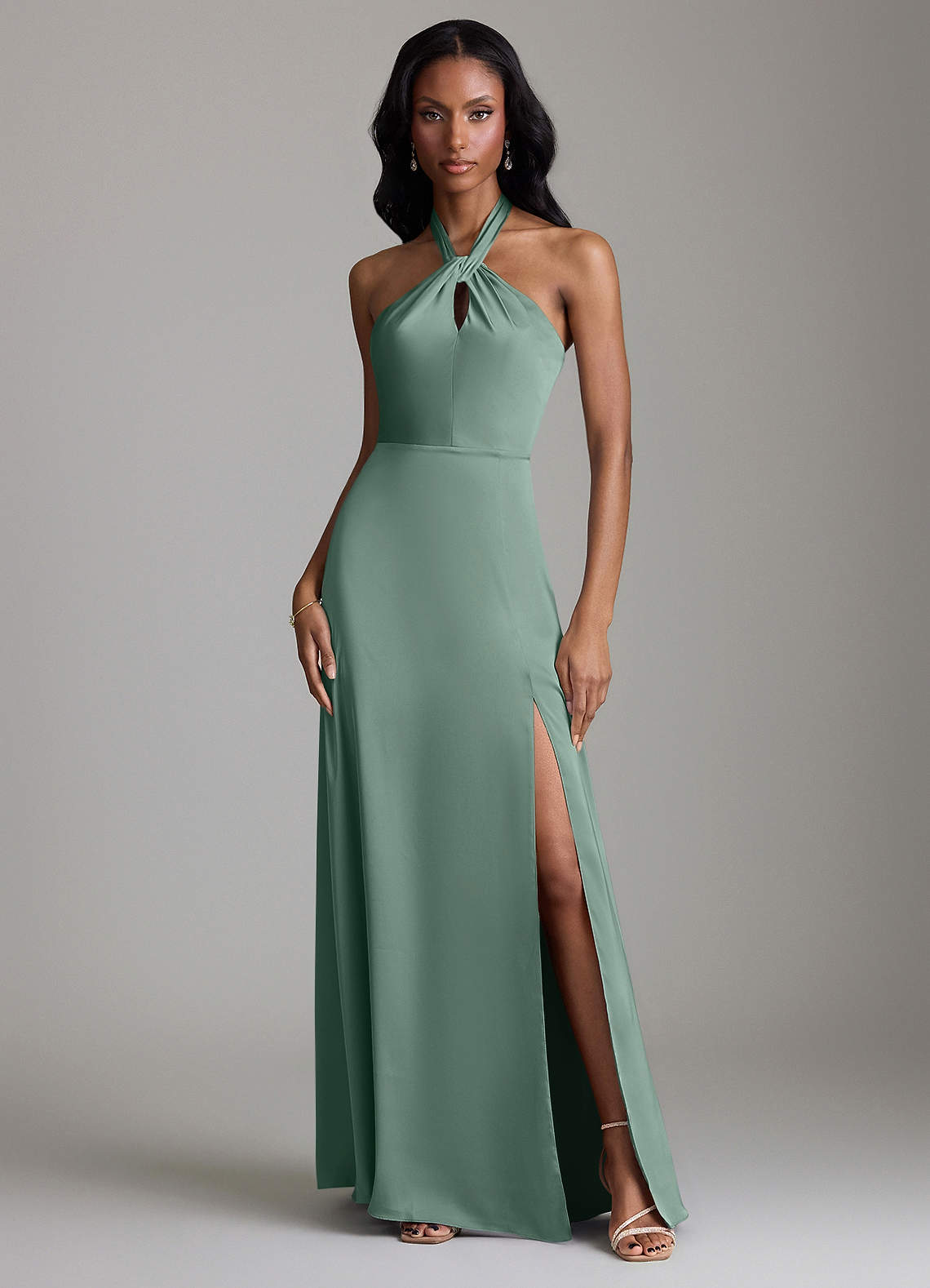 Eucalyptus A-Line Side Slit Stretch Satin Dress