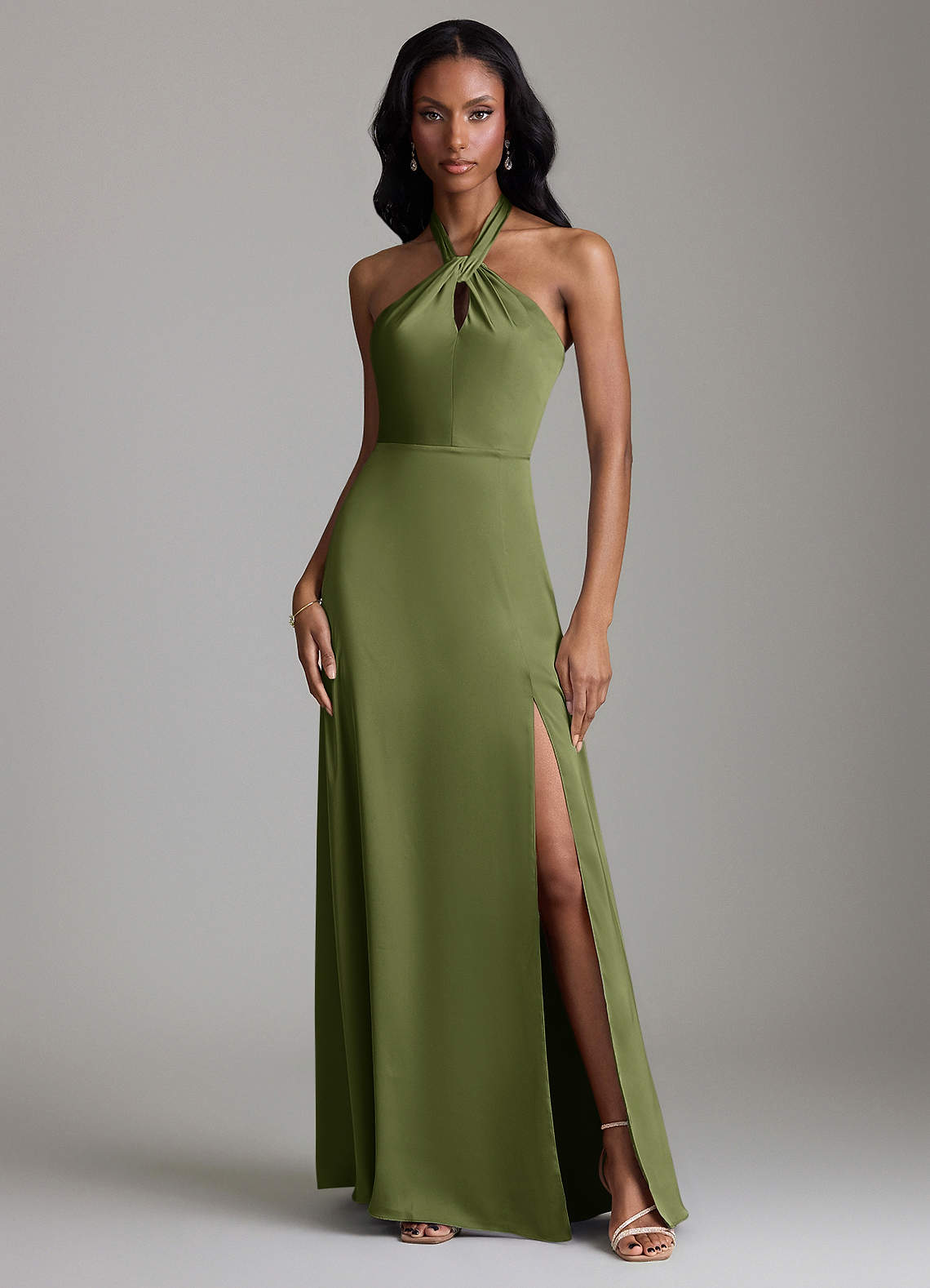 Olive A-Line Side Slit Stretch Satin Dress
