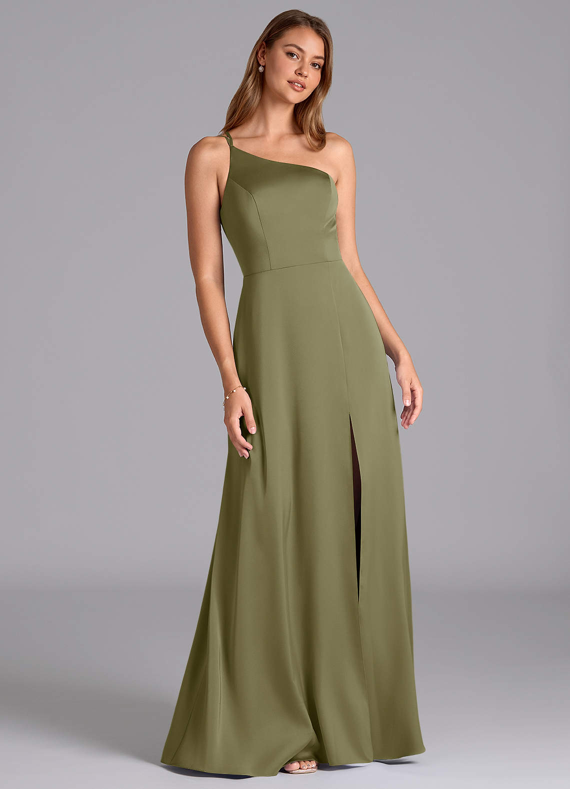 Pistachio A-Line One Shoulder Stretch Satin Dress