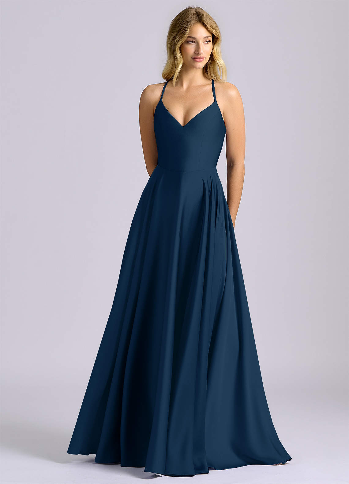 Dark Navy A-Line Stretch Satin Dress